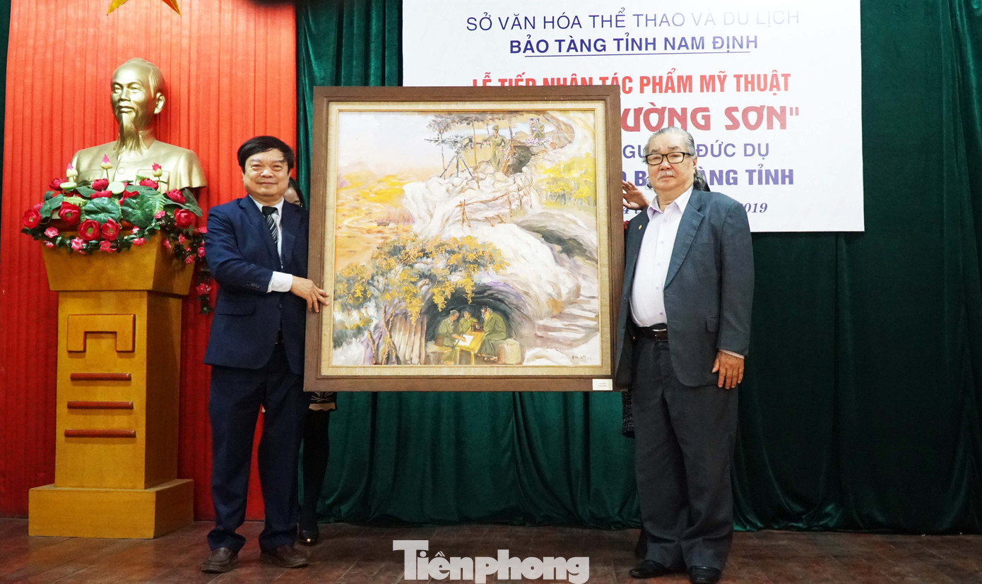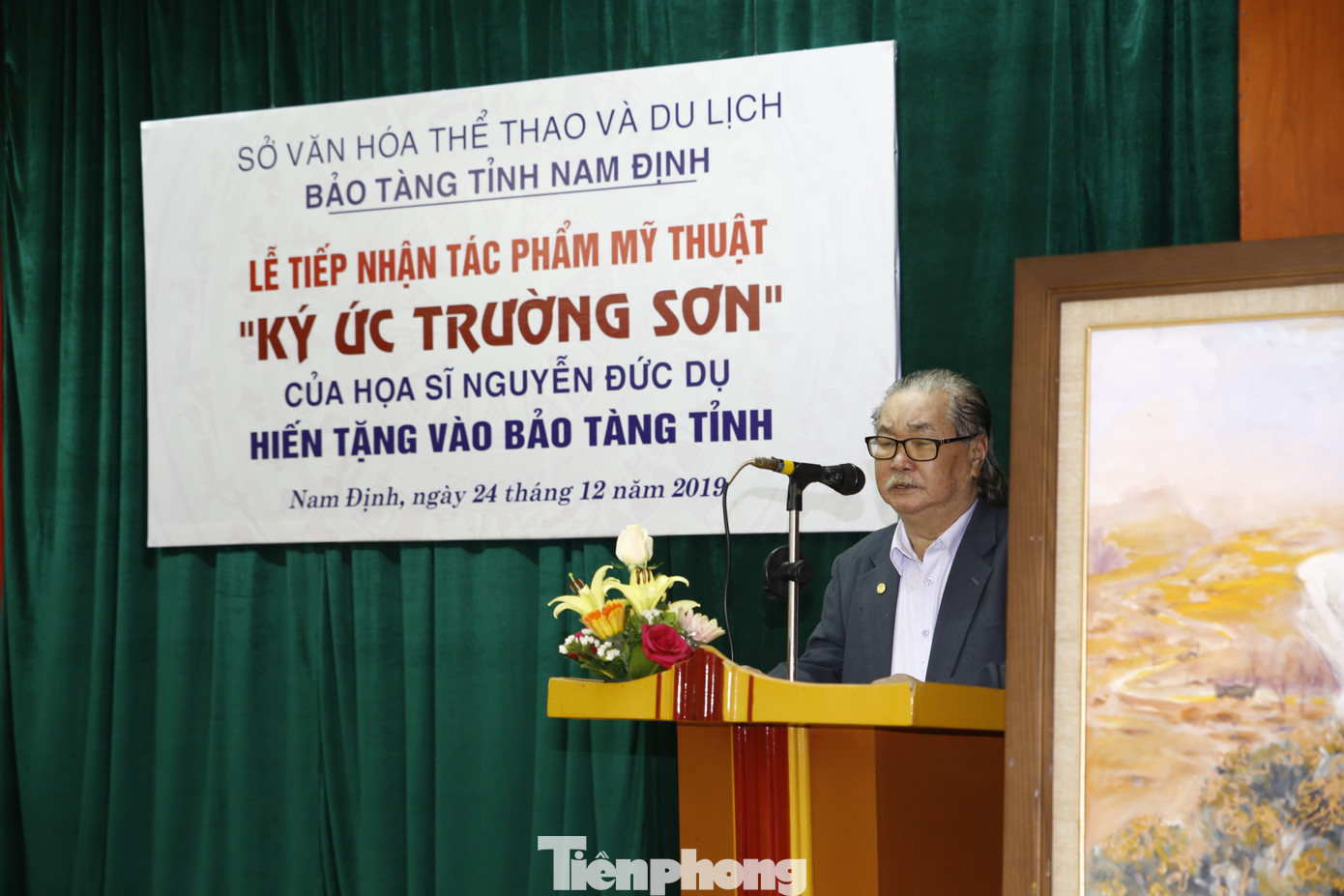 Chia sẻ tại buổi lễ, họa sỹ Đức Dụ cho biết, ông quyết định trao tặng các tác phẩm trên cho Bảo tàng Nam Định với tâm niệm đóng góp một phần tưởng nhớ công lao của các chiến sĩ Nam Hà - Nam Định đã chiến đấu tại chiến trường.