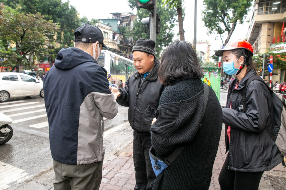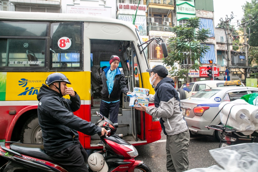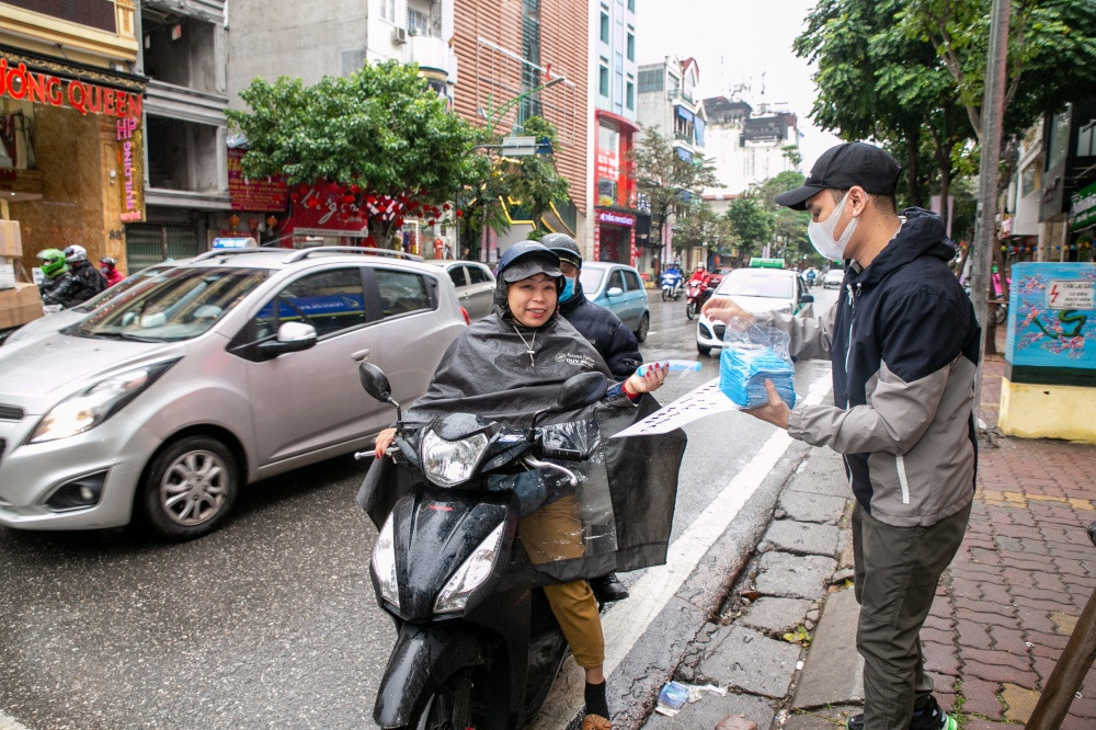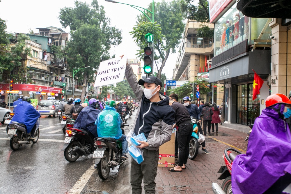Chiều 4/2, dù thời tiết Hà Nội nhiệt độ giảm sâu, trời mưa rét nhưng ca sĩ Khắc Việt và một số thành viên trong ekip của mình vẫn tổ chức phát tặng 10.000 chiếc khẩu trang đầu tiên tại khu vực ngã tư phố Huế - Trần Nhân Tông (Hà Nội) cho người dân.