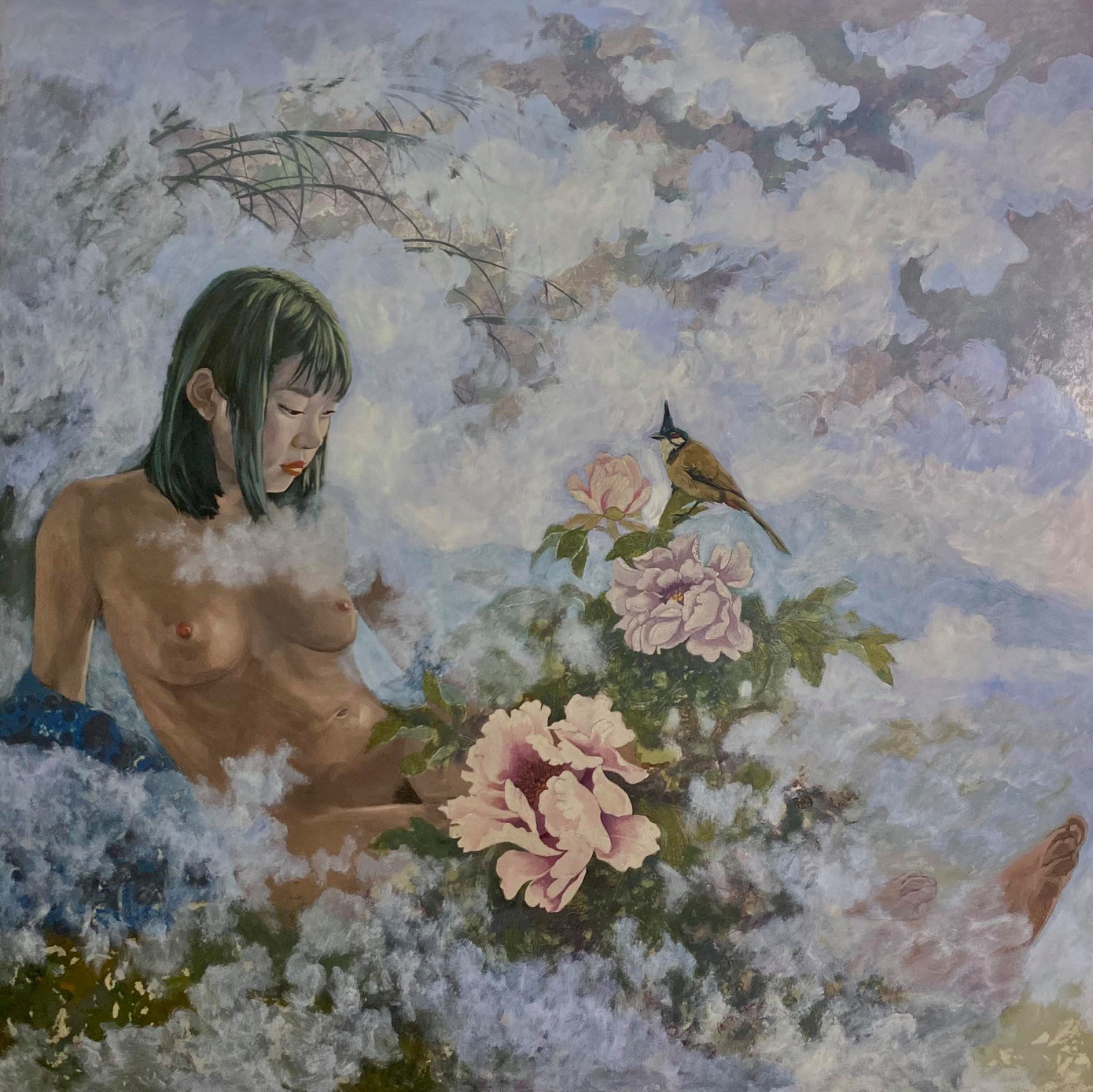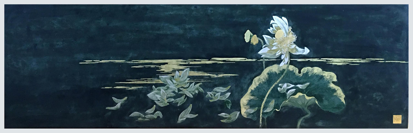 Nguyễn Nghĩa Dậu (giảng viên ĐH Mỹ thuật Việt Nam) giới thiệu những bức tranh hoa sen đậm chất thiền ẩn chứa nhiều năng lượng sống. Anh thu hút người xem bằng những mảng không gian tĩnh lặng đơn sắc đầy biểu cảm.