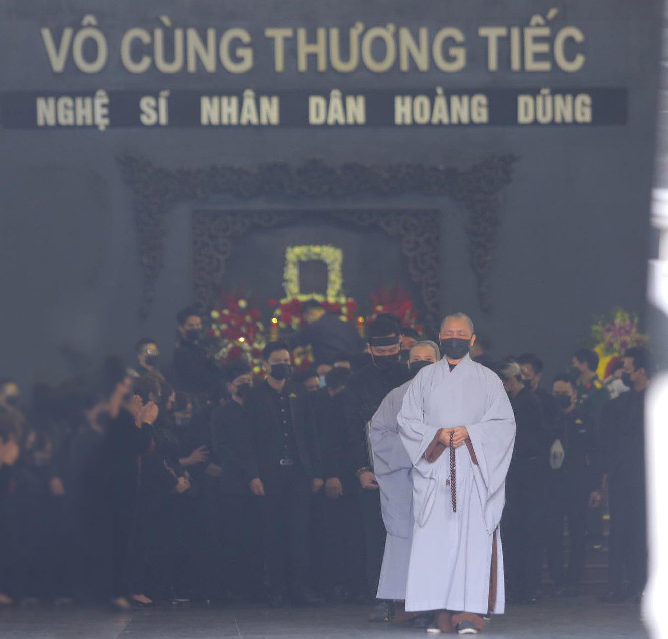 Anh trai NSND Hoàng Dũng thay mặt gia đình đáp từ, gửi lời cảm ơn tới các cơ quan, đoàn thể, các nghệ sĩ, đồng nghiệp, học trò và người hâm mộ đưa tiễn NSND Hoàng Dũng. Những lời cuối của người anh đối với người em trai khiến những người có mặt trong lễ truy điệu cay cay nơi khoé mắt.