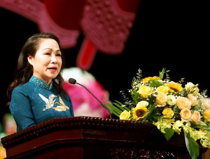 NSND Trịnh Thúy Mùi, Chủ tịch Hội Nghệ sĩ Sân khấu Việt Nam phát biểu chào mừng các thế hệ nghệ sĩ về dự lễ giỗ tổ. Thời gian qua dù vấp phải không ít khó khăn, Ban chấp hành Hội phối hợp tổ chức thành công nhiều hoạt động như Liên hoan Tuồng, Dân ca, Liên hoan quốc tế sân khấu thử nghệm.