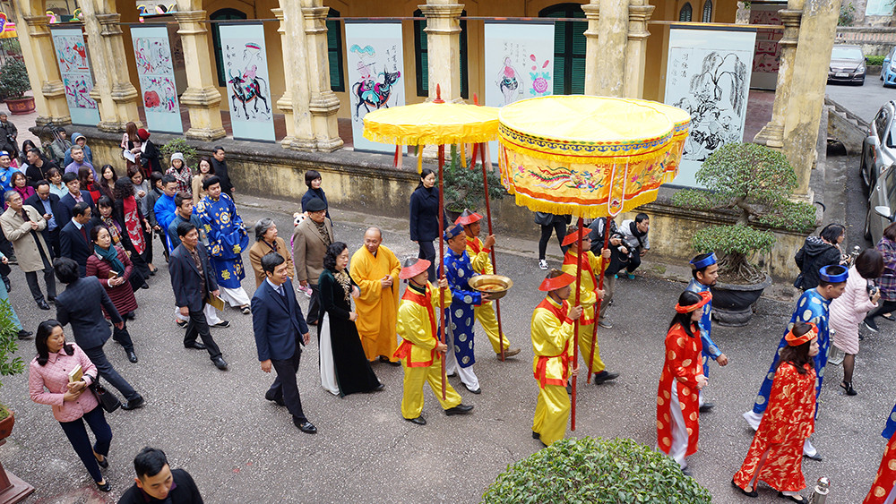 Đoàn rước theo lối hành cung phía Tây sang khu 18 Hoàng Diệu