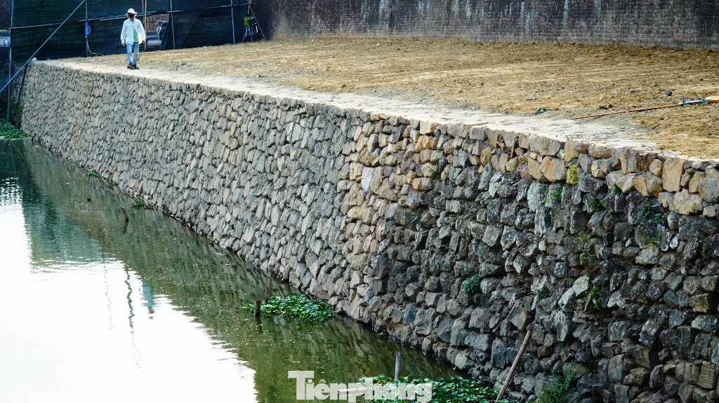 Bờ kè sau trùng tu được ghép lắp đá hoàn toàn thủ công, trét mạch vữa ngầm phía trong (cách mặt ngoài phiến đá cổ chừng 10cm) trông đều đặn, đẹp mắt nhưng không mất đi dáng vẻ cổ xưa vốn có của nó.