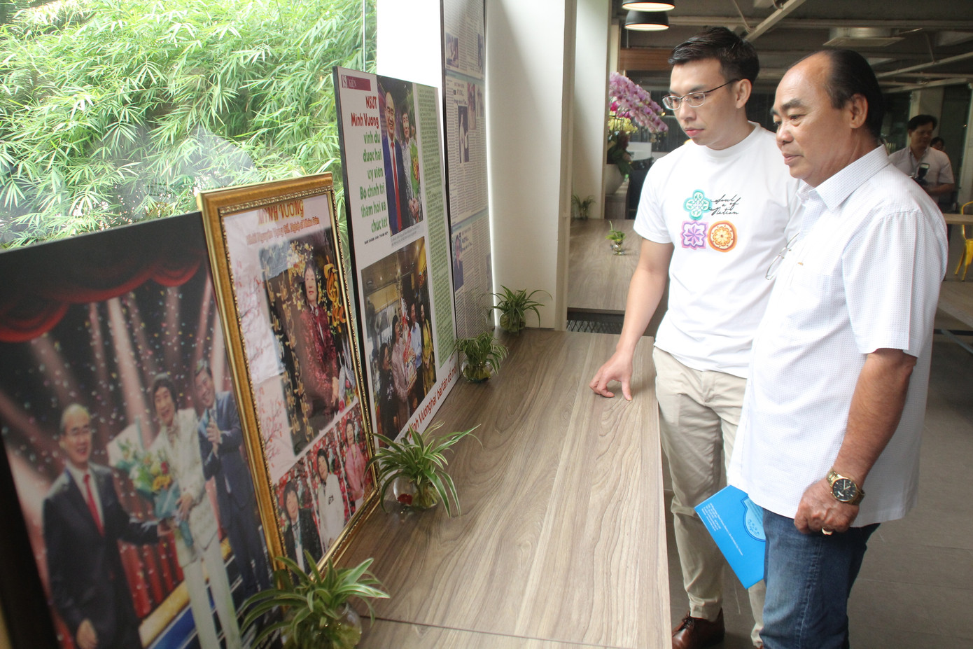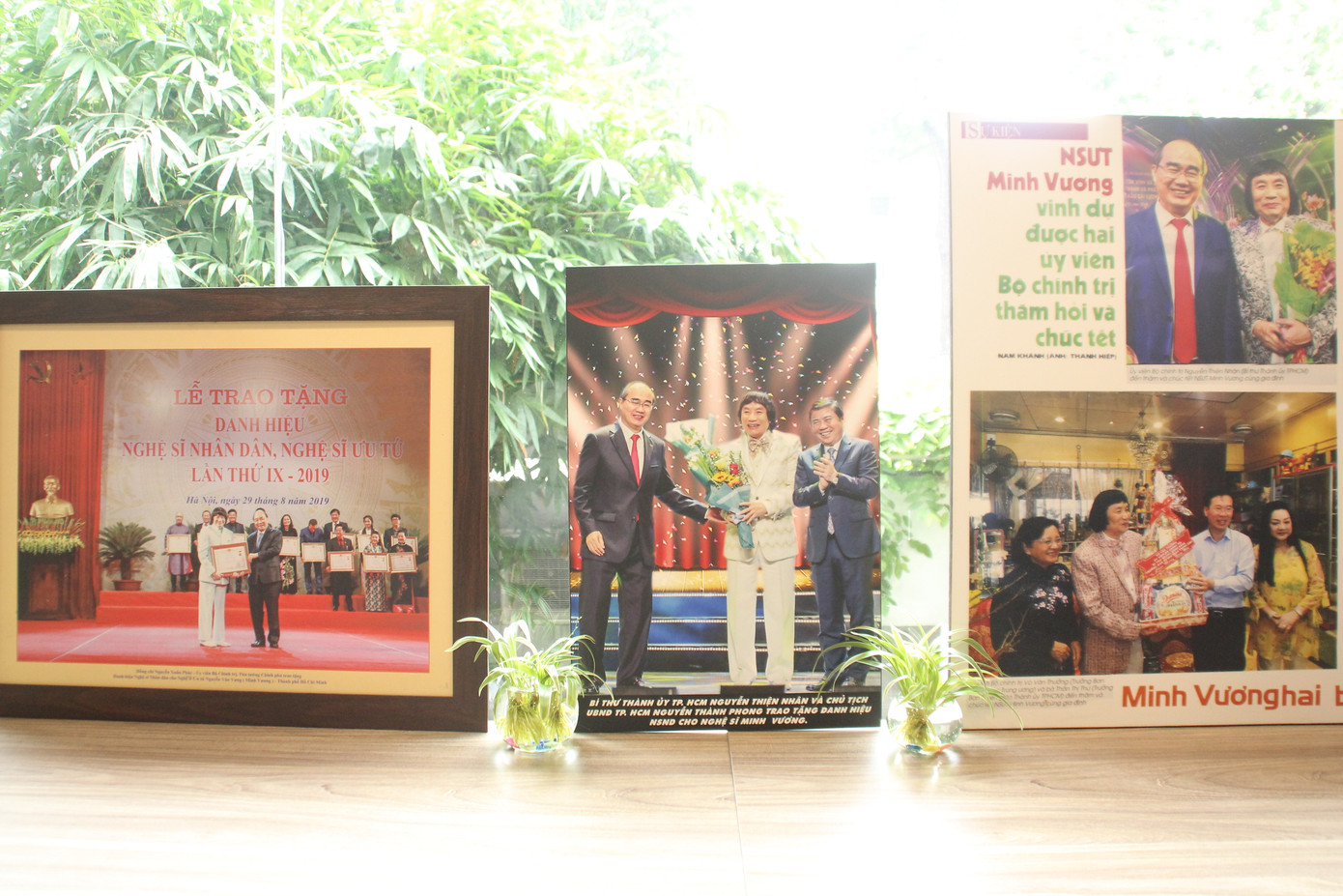 NSND Minh Vương (bên phải) trao tượng trưng hình ảnh từ bộ sưu tập của mình cho đại diện Nhà Văn hóa Thanh niên TPHCM Chia sẻ tại buổi trao tặng, NSND Minh Vương cho biết trong dịp Trưởng ban Tuyên giáo Trung ương Võ Văn Thưởng đến thăm, nghệ sỹ bày tỏ ý định tặng số hình ảnh tư liệu hoạt động nghề nghiệp của mình nhằm góp phần lan tỏa tình yêu nghệ thuật sân khấu cho nhiều người. Nguyện vọng này được Trưởng ban Tuyên giáo Trung ương cũng như nhiều nghệ sỹ, bạn bè sau đó ủng hộ, cổ vũ nên NSND Minh Vương càng hăng hái xúc tiến.