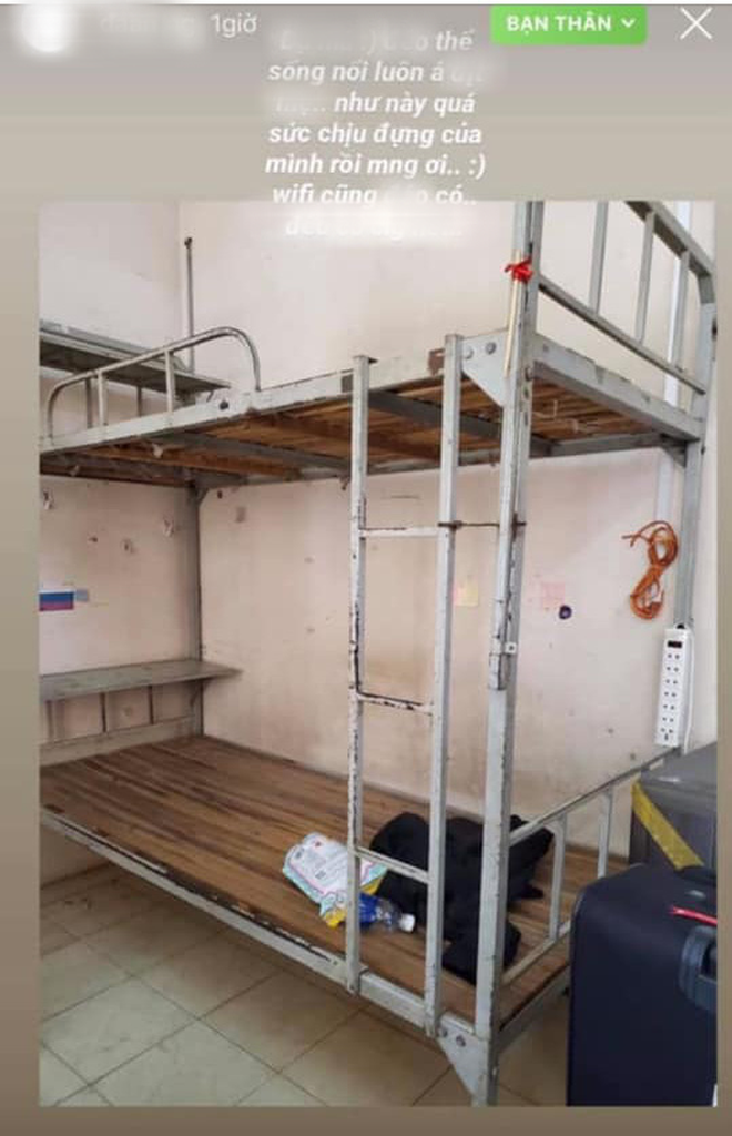 Theo đó, người này chụp khung cảnh trong phòng KTX và mô tả nơi này bẩn, "kinh khủng khiếp thật sự, không biết sống sao, không dám đụng vào cái gì trong phòng" và bày tỏ sự thất vọng vì nơi đây không giống "hình ảnh review trên mạng". Do đó, nữ du học sinh phải nhờ tới hai nam sinh ở phòng khác qua dọn dẹp giúp. Thậm chí, trong một đoạn tin nhắn với bạn, người này bày tỏ muốn xin được chuyển qua khu cách ly ở resort giống bạn vì "ở đây thêm giây phút nào nữa chắc không sống nổi".