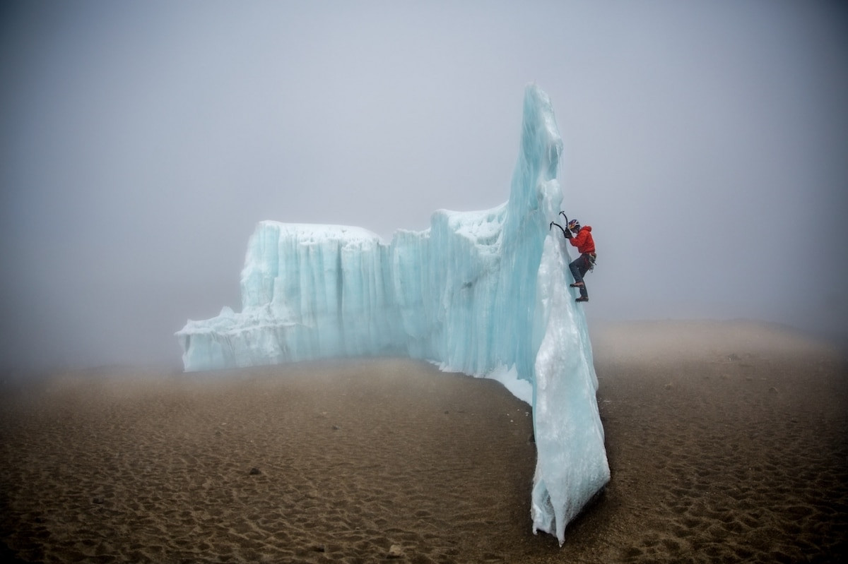 “Nhà leo núi chuyên nghiệp Will Gadd đang leo trên lớp băng còn sót lại trên miệng núi lửa Kilimanjaro. Tảng băng này nằm tự do và trông giống như những tảng băng trôi trên cát ” là nội dung mô tả tác phẩm “Burning Dreams” của Carolina Rapezzi, nó giành vị trí thứ ba ở hạng mục “Bảng phân cảnh”.