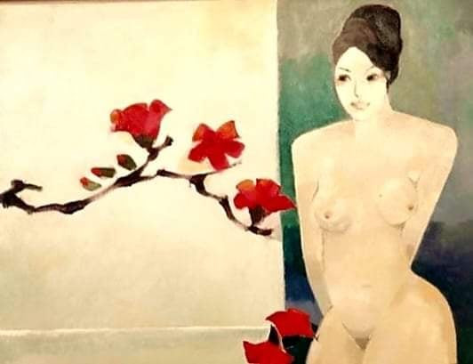 Trịnh Tú là người cầm cọ có tâm hồn của một thi nhân. Không cần phải vẽ cả một trời hoa gạo chỉ cần vài bông gạo đỏ bên một người đàn bà khỏa thân, họa sỹ đã mang đến sự rực rỡ, nồng nhiệt, nóng bỏng của màu hoa tháng ba.