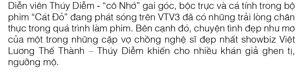 Thật ra người động viên Diễm ứng tuyển “Cát Đỏ” chính là anh Thành, bởi vì anh ấy hiểu, một người diễn viên tìm kiếm được kịch bản tâm đắc rất khó khăn. Có nhiều người chẳng bao giờ tìm kiếm được tác phẩm mà thật sự thích thú trong cả cuộc đời làm nghề, cho nên khi Diễm kể cho chồng nghe về bối cảnh phim, đạo diễn ra sao, anh Thành là người ủng hộ. Lúc đó, anh xã quyết định ngưng hết công việc, không nhận phim nào nữa để hoàn toàn thay Diễm ở nhà chăm con. 6 tháng trời Diễm không đóng phim mới thì anh Thành cũng vậy.