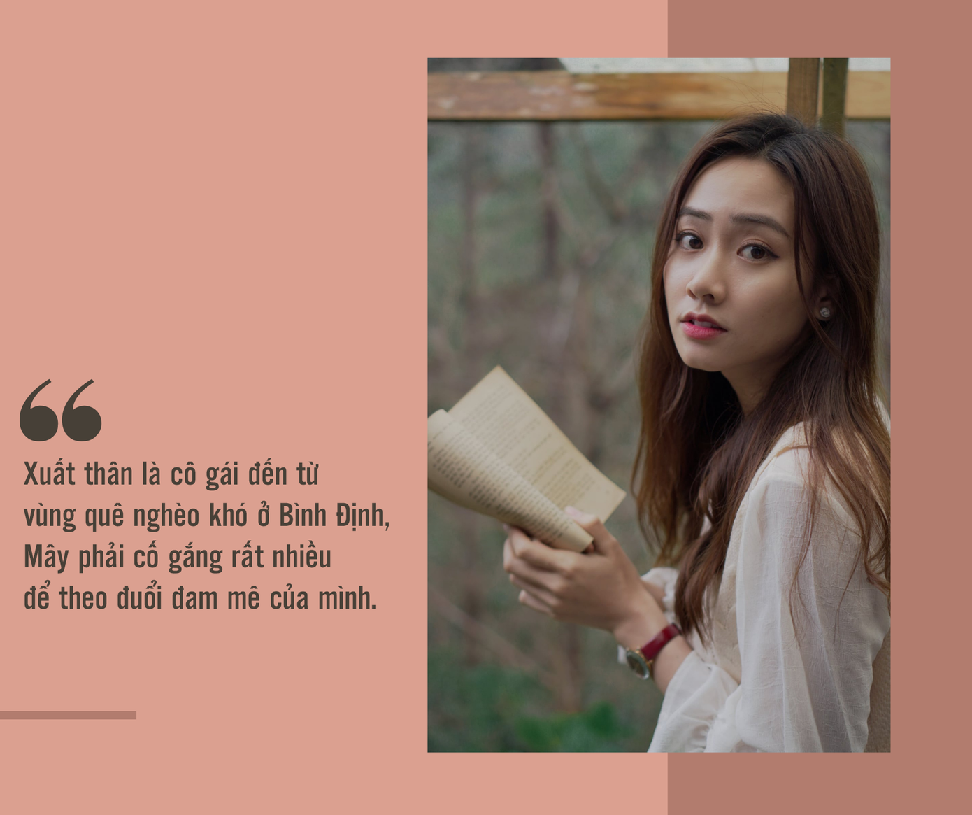 Mây sinh ra ở một vùng quê nghèo thuộc tỉnh Bình Định. Thời điểm đó, trong quan điểm của người dân, những nghề như công an, bác sĩ, giáo viên... được mọi người coi trọng. Phụ huynh ai cũng mong con cái có công ăn việc làm ổn định. Còn diễn viên là nghề bấp bênh, không rõ tương lai. Khi quyết định theo đuổi học ngành diễn viên, Mây đã phải giấu cha mẹ, tự đi làm thêm đủ việc để có tiền trang trải học phí. Thời gian ngắn sau đó, cha mẹ để ý và phát hiện Mây nói dối. Cha mẹ buồn và giận nhiều lắm vì lo cho con gái sẽ không giữ được mình nếu đi vào con đường showbiz thị phi, lắm cám dỗ. Nhưng rồi mọi thứ cũng nguôi ngoai. Nhờ sự quyết tâm và ước mơ với nghề, Mây đã thuyết phục được cha mẹ ủng hộ con đường của mình rồi! Và bà con hàng xóm ai cũng quý mến và đón xem các bộ phim của Mây đóng. Mây thấy vui và hạnh phúc lắm!
