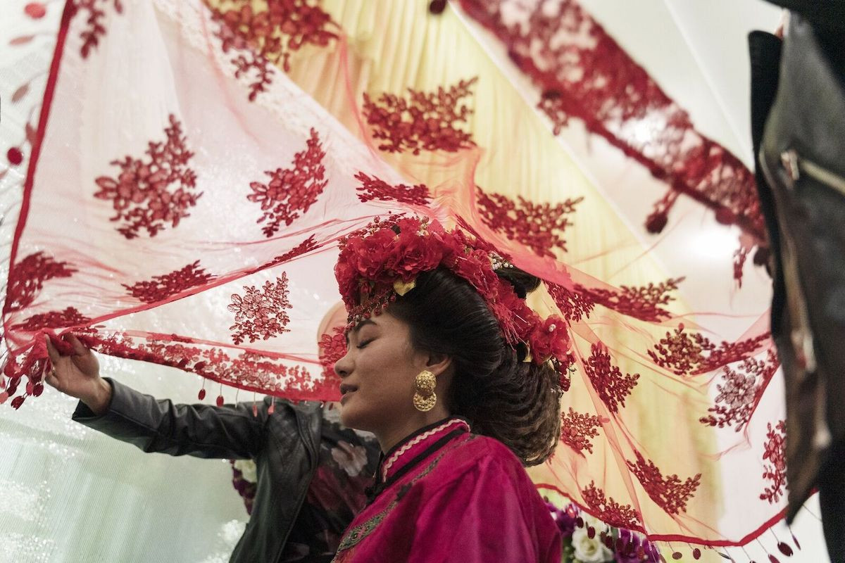 Tác giả Yam G-Jun giành giải ở hạng mục Con người. Bức ảnh chụp cô dâu người Dungan tên Madina (20 tuổi), được phủ tấm màn trùm đầu màu đỏ trước khi rời khỏi nhà chú rể trong một đám cưới ở Milyanfan, Kyrgyzstan. Có thể thấy, lễ cưới truyền thống của người Dungan ảnh hưởng bởi văn hóa Trung Quốc từ thế kỷ 19.