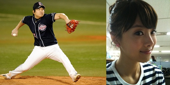 | Song Ji Sun và cầu thủ bóng chày Im Tae Hoon. |