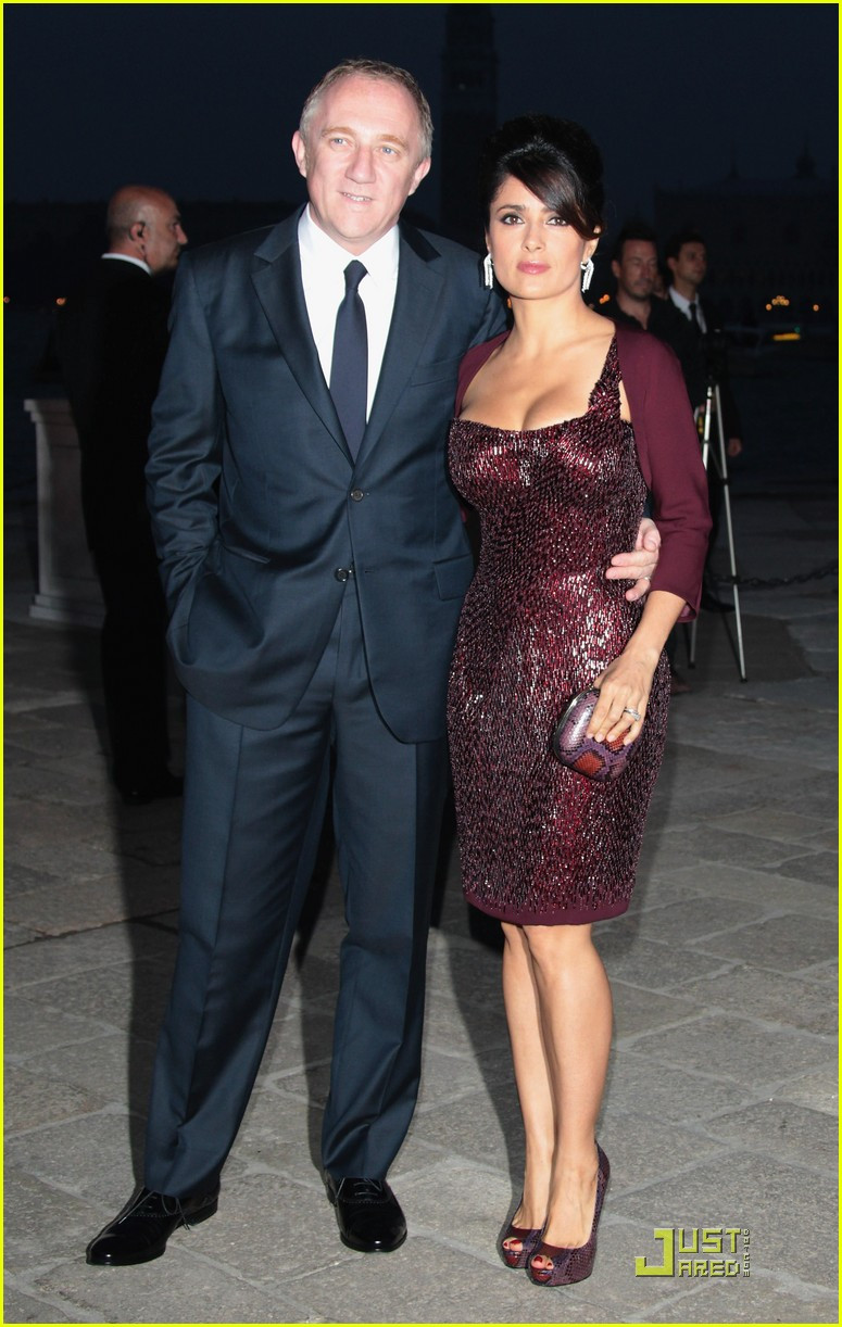 Hộ tống Salma Hayek tới tham dự buổi tiệc Il Mondo Vi Appartiene là chồng cô – doanh nhân nổi tiếng Francois-Henri Pinault và cô con gái Valentina.