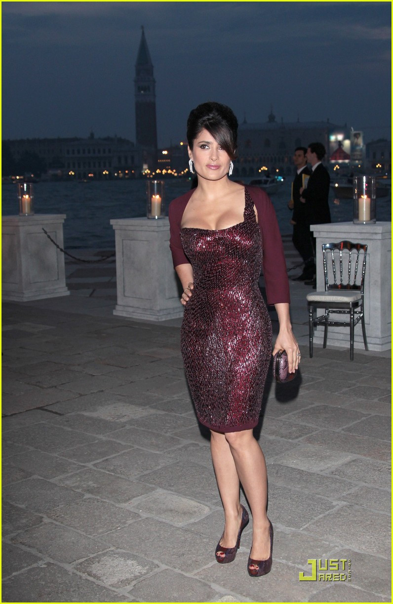 Chùm ảnh Salma Hayek khoe vòng 1 gợi cảm với váy bó: