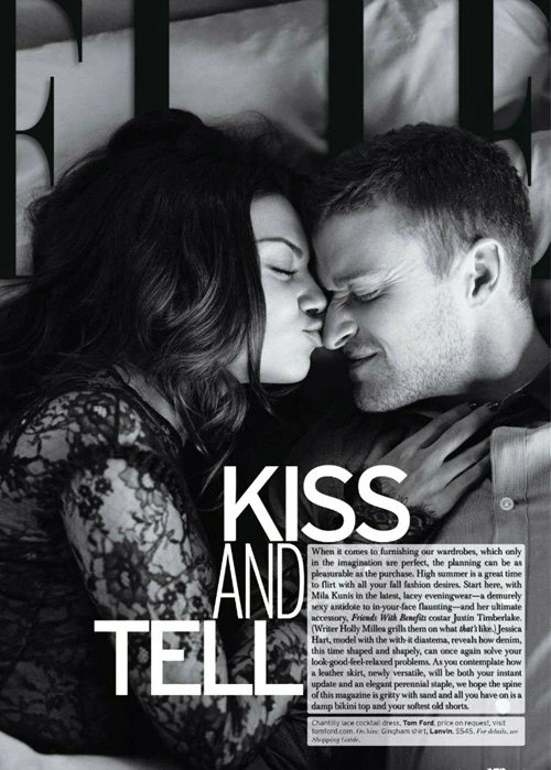 TPO – Vừa hoàn thành vai diễn một cặp đôi ‘yêu không ràng buộc’ trong bộ phim điện ảnh “Friends With Benefits”, chàng ca sĩ ‘Sexy Back’ và bạn diễn Mila Kunis trông hệt như một cặp tình nhân yêu nhau say đắm trên tạp chí Elle số tháng 8.