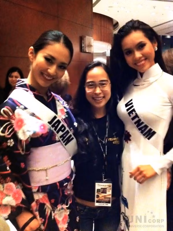 | Hoa hậu Hoàn vũ Việt Nam luôn thể hiện niềm tự tôn dân tộc với bạn bè quốc tế. |