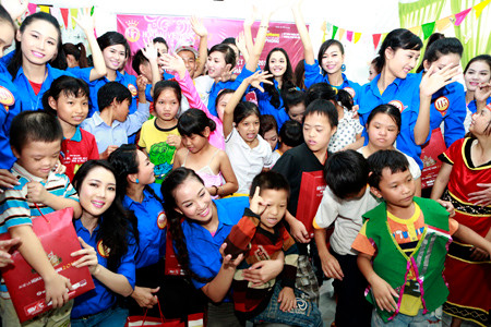 Tại cơ sở 3 của Trung tâm bảo trợ nạn nhân chất độc da cam và trẻ em bất hạnh ở xã vùng ven Hòa Nhơn (huyện Hòa Vang, Đà Nẵng), trong sắc áo xanh tình nguyện, những người đẹp có buổi giao lưu thân ái với các em nhỏ.