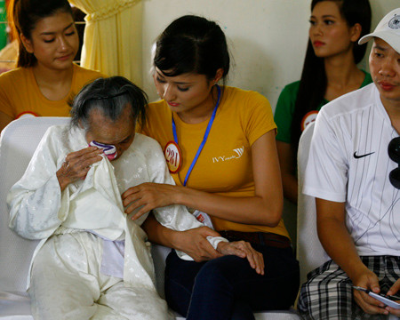 TPO - Ngày 16–8, 40 thí sinh dự Vòng Chung kết Cuộc thi Hoa hậu Việt Nam 2012 thăm tặng quà cho các nạn nhân chất độc da cam và các cụ già thuộc Trung tâm bảo trợ người có công thành phố Đà Nẵng.