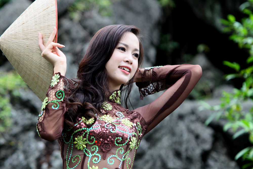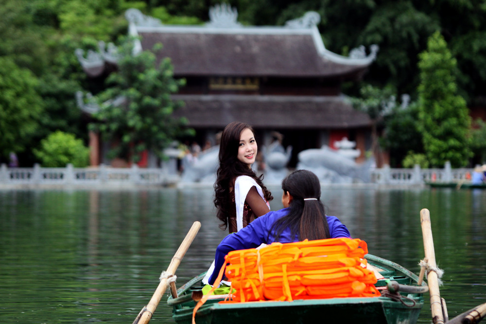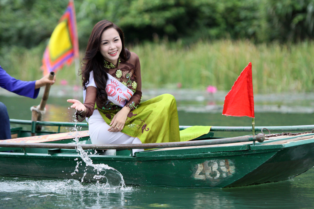 | Người đẹp Áo dài Ngọc Anh tại Tràng An. Ảnh: Minh Đức |