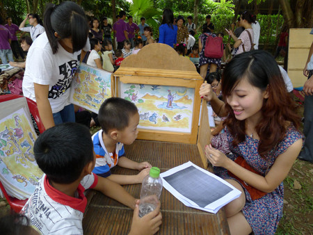 Các em được tìm hiểu ý nghĩa Tết Trung thu qua các trò chơi: Nghe kể chuyện về Tết Trung thu, vẽ tranh hoặc tô màu về chủ đề Trung thu, ghép hình các nhân vật trong sự tích Trung thu do các anh chị tình nguyện viên đến từ các trường đại học trên địa bàn Hà Nội hướng dẫn.