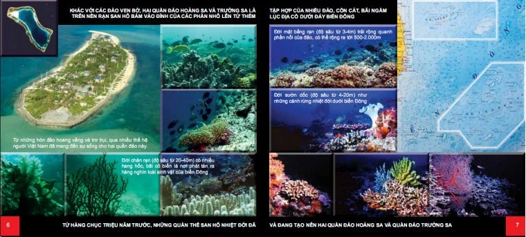 Cuốn sách ảnh gần 50 trang trình bày một cách khoa học và phong phú, từ những tư liệu lịch sử khẳng định chủ quyền hai quần đảo Hoàng Sa và Trường Sa, đến cuộc sống của người dân, hình ảnh người chiến sĩ đang ngày đêm ở nơi đầu sóng ngọn gió.