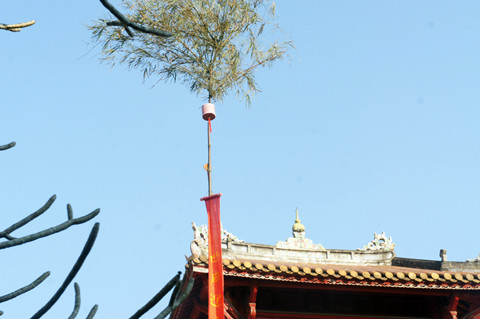Sáng hôm nay, 27 tháng Chạp, Trung tâm Bảo tồn Di tích Cố đô Huế làm lễ dựng nêu ở trước Thế Tổ Miếu và Hiển Lâm Các, nhằm tạo thêm không khí trang nghiêm và vui tươi trong những ngày Tết Nguyên đán.
