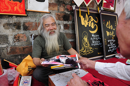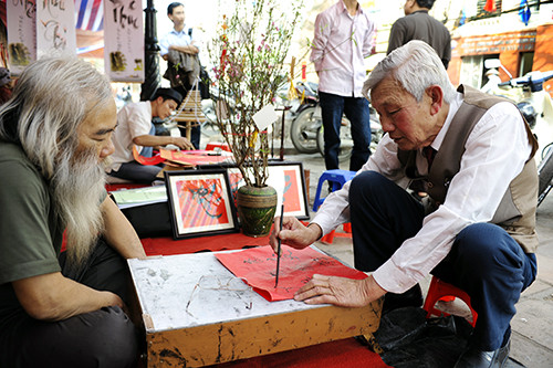 Phố ông đồ tại Văn Miếu (Hà Nội) năm nay không còn chen chúc, tấp nập như mọi năm.