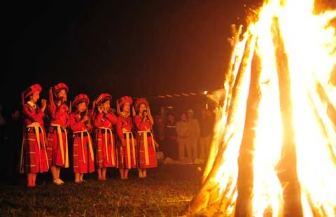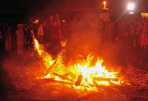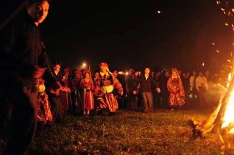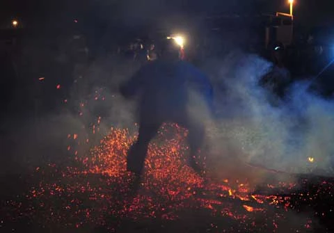 TPO - Lễ hổi nhảy lửa của người Pà Thẻn được tổ chức tại sân nhà Sàn E đê trong quần thể làng các dân tộc Việt Nam ở Hà Nội, dưới tiết trời mưa phùn đầu xuân.