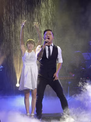Đạo diễn Việt Tú ưu ái đem hẳn một “vòi sen” cỡ đại lên sân khấu để tưới cho Tuấn Hưng và vũ công. Chả thế có báo mạng giật tít “Tuấn Hưng tắm mưa với ‘gái lạ’ trên sân khấu...” Có lẽ ở những liveshow sau, đạo diễn sẽ được các ca sĩ o bế nhiều hơn hòng tạo nên những cảnh ướt át câu khán giả để còn thăng hạng. |