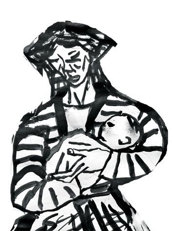 Lão Phính thập thò ở bên ngoài. Mụ mở cửa, lách vào. Sản phụ nằm nghiêng, úp mặt vào tường, lí nhí. “ Đằng nào em cũng không có sữa, anh chị mang cháu về mà bầu bạn”. Mụ run rẩy đưa tay bồng đứa bé lên. Tiếng lão Phính hỏi vọng vào. “Con trai hay con gái đấy?”. Tiếng một bà vọng ra. “Con gái, đỏ như cái mậm giềng ấy, khỏe lắm”. Mụ bế đứa trẻ sát vào lòng mình, cho nó nhận hơi ấm từ mụ. Nhìn con bé, mụ thấy cay cay sống mũi. Lão Phính xòe ô, che cho hai mẹ con khi ra đến sân.