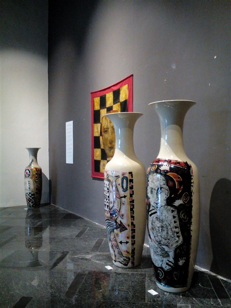 Bình gốm tại Triển lãm “Sự hòa hợp tuyệt vời”. Ảnh : H.T
