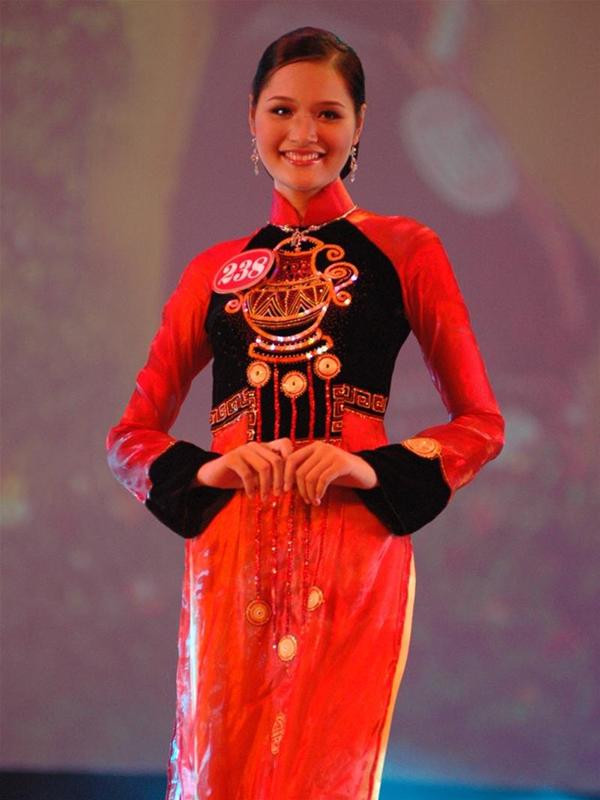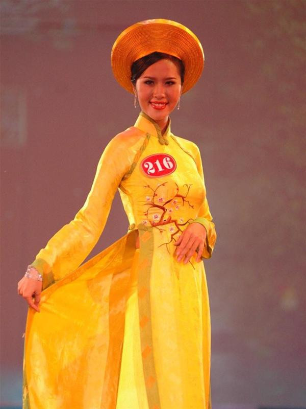 20h40 : Người đẹp Hoàng Ngọc Bích (SBD 546) bước ra sân khấu mở màn phần trình diễn trang phục áo dài, do nhà thiết kế Hoài Sang thực hiện. Những tà áo dài cách điệu và truyền thống với những mầu sắc rực rỡ trong nền sáng ngọc càng làm tôn thêm vẻ yêu kiều của các người đẹp.