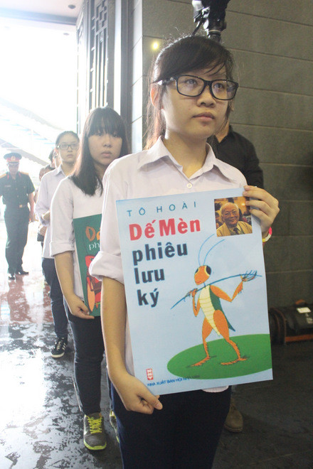 Không chỉ bạn bè, đồng nghiệp mà đông đảo những người mến mộ nhà văn Tô Hoài, trong đó có rất nhiều các em thiếu nhi, cũng đã không quản trời mưa đến đưa tiễn “bác Dế mèn” về nơi an nghỉ cuối cùng.