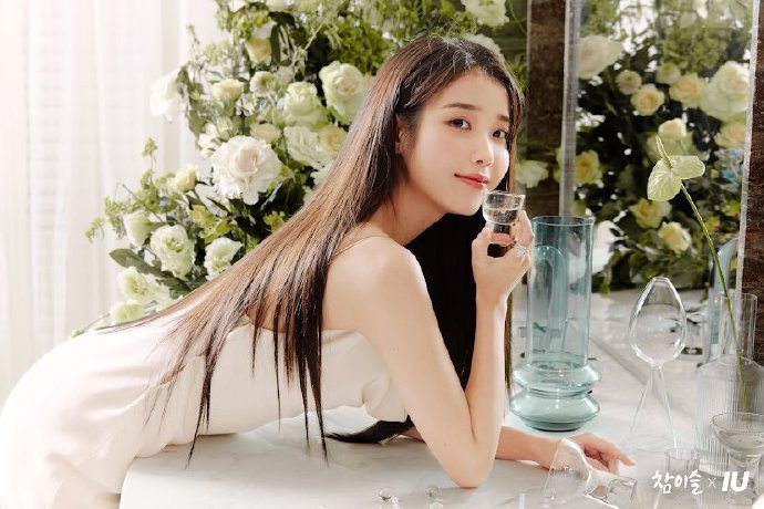 Xuất hiện trong bộ ảnh quảng cáo mới, IU diện đầm hai dây trắng, khoe làn da trắng mịn và bờ vai thon.