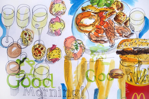 Ông nói: "Tôi đã lưu giữ tất cả những bản phác thảo để tự làm nên một kỷ lục cá nhân. Tôi đã cố lưu giữ lại những thực phẩm bằng cách vẽ lại nhãn sản phẩm và bao bì của chúng. Tôi chụp ảnh kỹ thuật số tất cả các bữa ăn và vẽ lại chúng trong vòng khoảng từ một đến hai giờ phụ thuộc vào các món ăn”.
