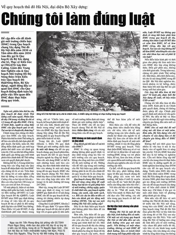 Thưa ông, đọc bài trả lời phỏng vấn của ThS.KTS Lưu Đức Cường, Giám đốc Trung tâm Nghiên cứu&Quy hoạch Môi trường Đô thị Nông thôn, Bộ Xây dựng, ông có cảm nhận gì không?