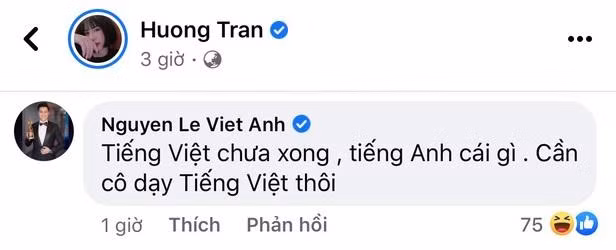 Ngoài ra, Việt Anh còn lộ cách nói chuyện khá thẳng thắn với vợ cũ. Khi vợ cũ đăng tải trạng thái tìm gia sư tiếng Việt và tiếng Anh cho con trai của hai người, Việt Anh đã bình luận rằng "Tiếng Việt chưa xong, tiếng Anh cái gì. Cần cô dạy tiếng Việt thôi". Sau đó, vợ cũ của nam diễn viên đã chỉnh sửa lại, chỉ tìm gia sư dạy tiếng Việt cho cậu nhóc 5 tuổi mà thôi.