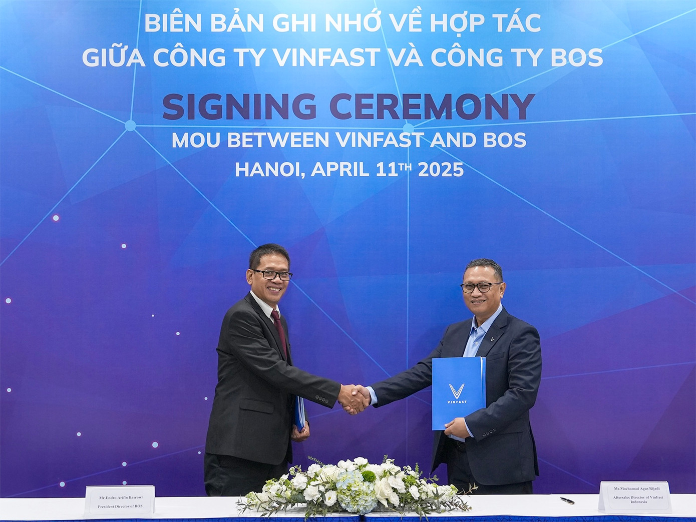Ông Endro Arifin, Giám đốc điều hành tại PT Penta Artha Impressi (Bengkel BOS) cho biết: “Tận dụng kinh nghiệm, hiểu biết địa phương và mạng lưới xưởng dịch vụ rộng khắp, chúng tôi vinh dự được trở thành đối tác chiến lược của VinFast trong hành trình chinh phục thị trường Indonesia. Cùng nhau, Bengkel BOS và VinFast cam kết mang đến cho người tiêu dùng những trải nghiệm vượt trội, đồng thời góp phần thúc đẩy sự phát triển không ngừng của thị trường xe điện trong khu vực”.