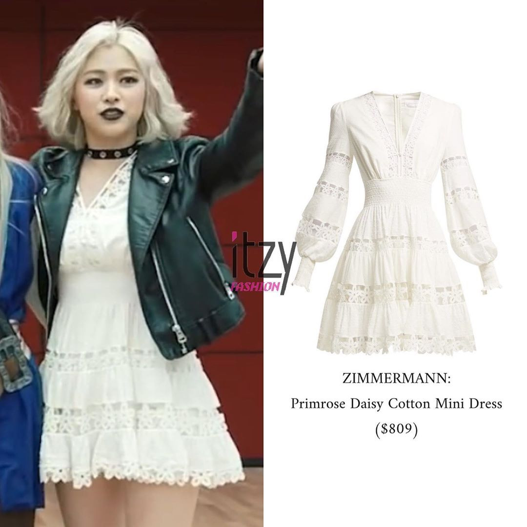 Cô mặc chiếc váy trắng ren ngắn dài tay của Zimmermann có giá khoảng 19 triệu đồng, khoác áo da bên ngoài và đeo vòng cổ kiểu choker.