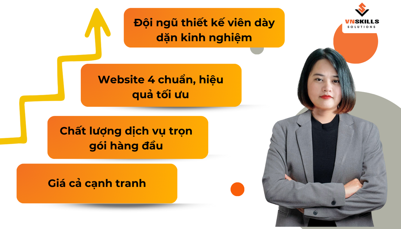 VnSkills Solutions luôn đặt chất lượng lên hàng đầu, cam kết mang đến cho bạn website đẹp mắt, hiệu quả cao, đáp ứng mọi yêu cầu của khách hàng. Dịch vụ thiết kế website theo yêu cầu trọn gói từ A-Z giúp bạn tiết kiệm thời gian, công sức và chi phí.