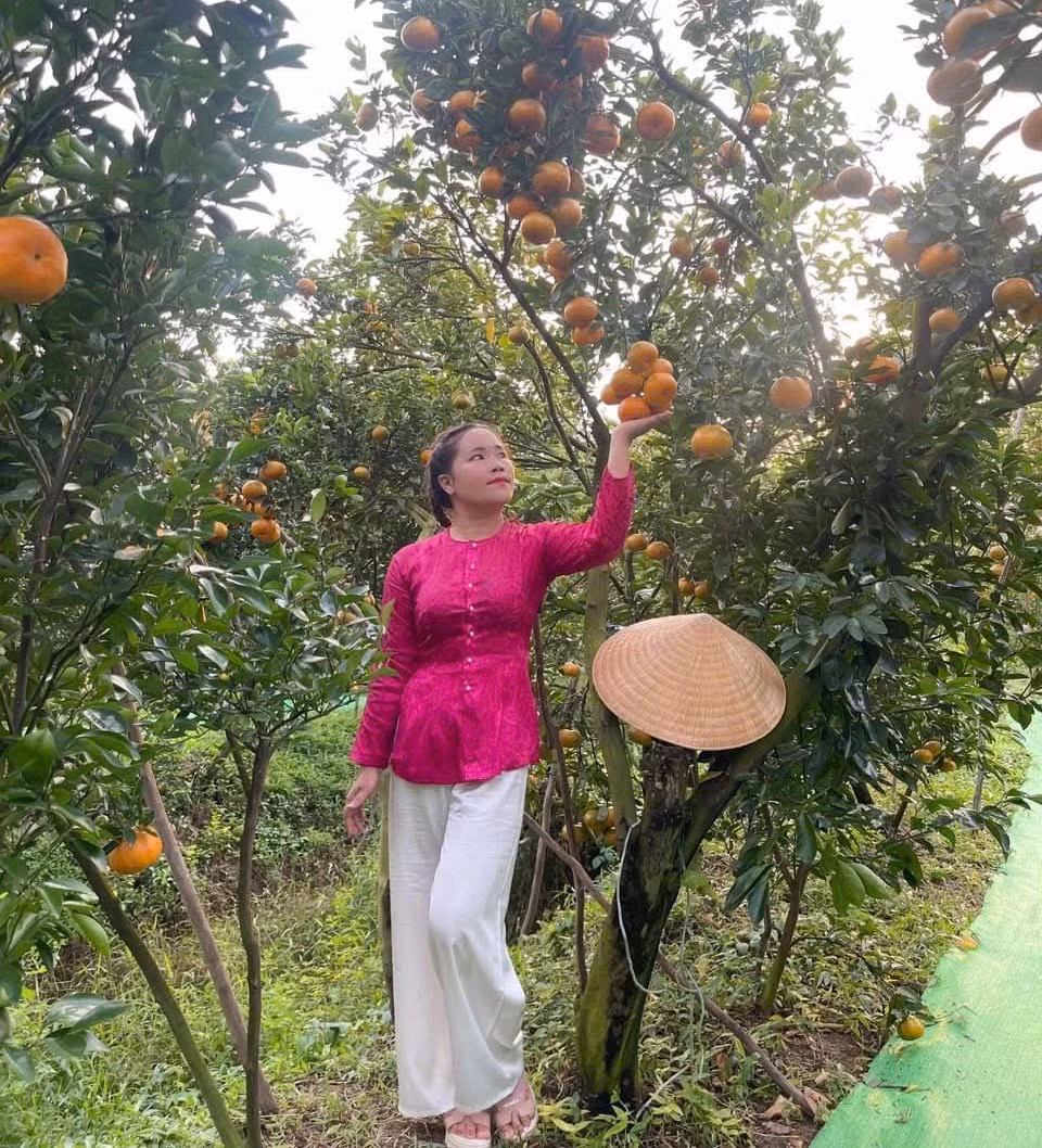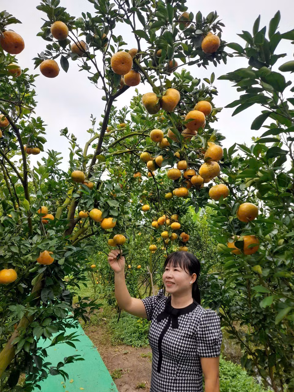 | Du khách 'thả hồn' bên vườn quýt trĩu quả. |