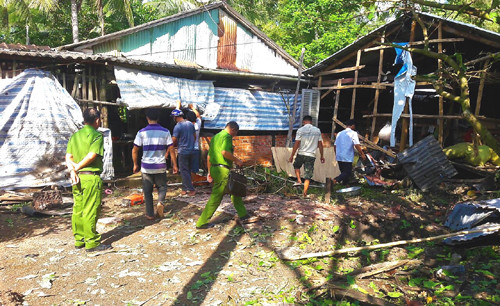 Tại hiện trường, vụ nổ tạo hố có đường kính rộng hơn 1m, sâu khoảng 0,5cm, cây cối xung quanh đổ rạp, nhiều vật dụng một số căn nhà cạnh bên hư hỏng nặng.