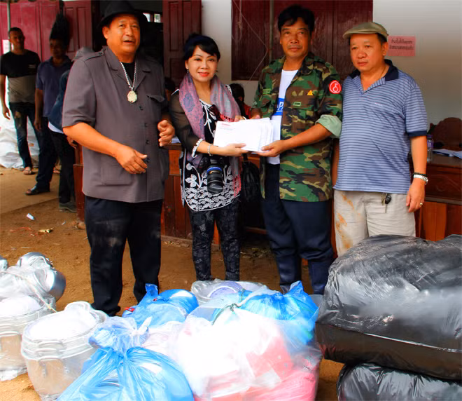 Rất nhiều xe bán tải chở học sinh từ thủ đô Vientiane vào Sanamxay. Khi chúng tôi thắc mắc tại sao lại đưa học sinh đi cứu trợ, trung úy Phút Thạ Xay cho biết lớn nhỏ gì vào đây cũng được giao việc như bốc vác, xếp hàng vào kho, phân phát hàng cứu trợ, dọn vệ sinh. “Chứng kiến trực tiếp hoàn cảnh người dân nơi cứu trợ sẽ giúp các em ý thức hơn về cuộc sống, nhất là ở nơi hoạn nạn, khó khăn. Từ đó, khi lớn lên các em sẽ có ý thức giúp đỡ cộng đồng”.