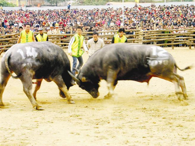 Sôi nổi hấp dẫn nhất vẫn là phần thi chọi trâu. 16 trận đấu chọi trâu sáng mùng 6 chỉ là vòng loại nhưng có tới trên hai vạn người dự khán.