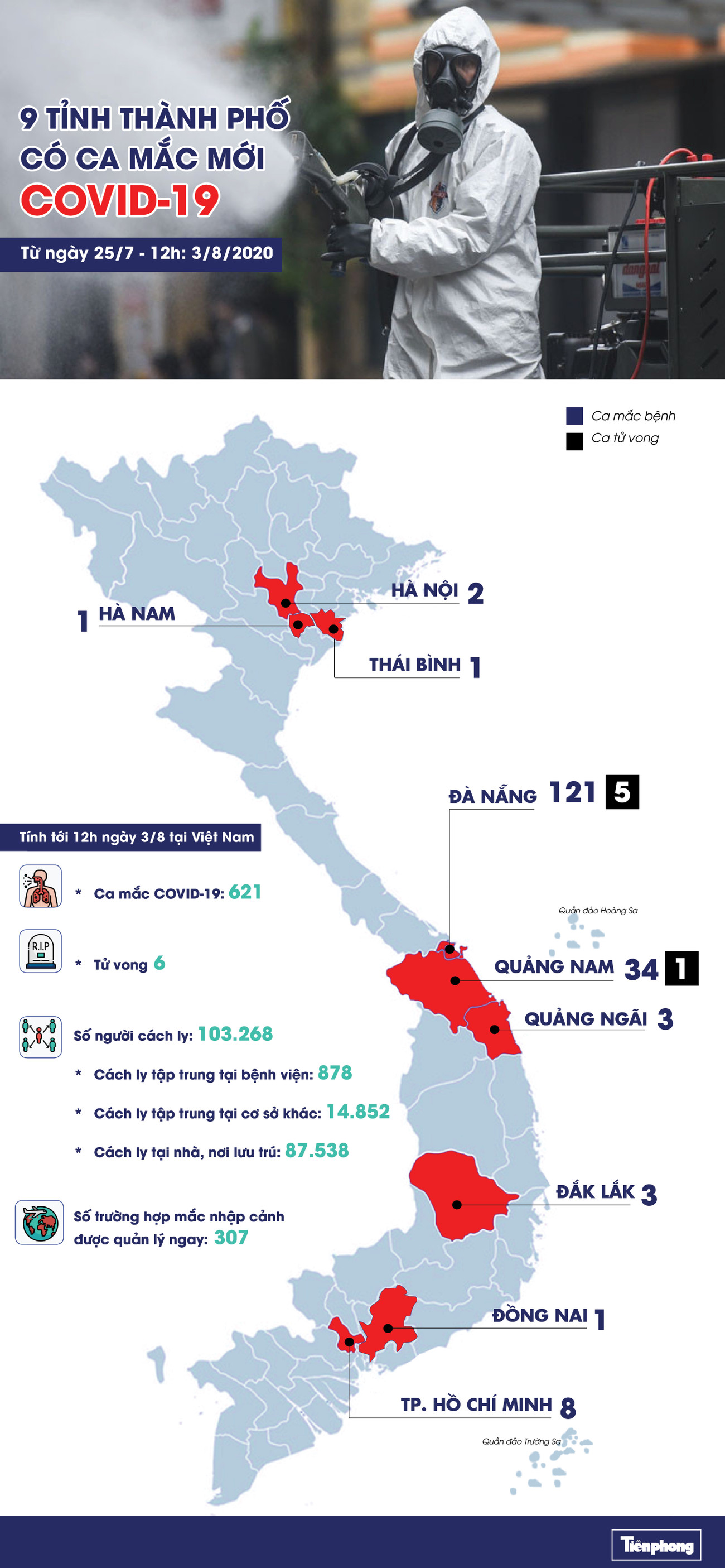 TPO - Sau 99 ngày không phát hiện trường hợp nhiễm tại cộng đồng, từ ngày 25/7/2020 đến nay đã có 206 trường hợp, trong đó có 174 trường hợp lây nhiễm trong nước tại tại 9 tỉnh, thành phố.