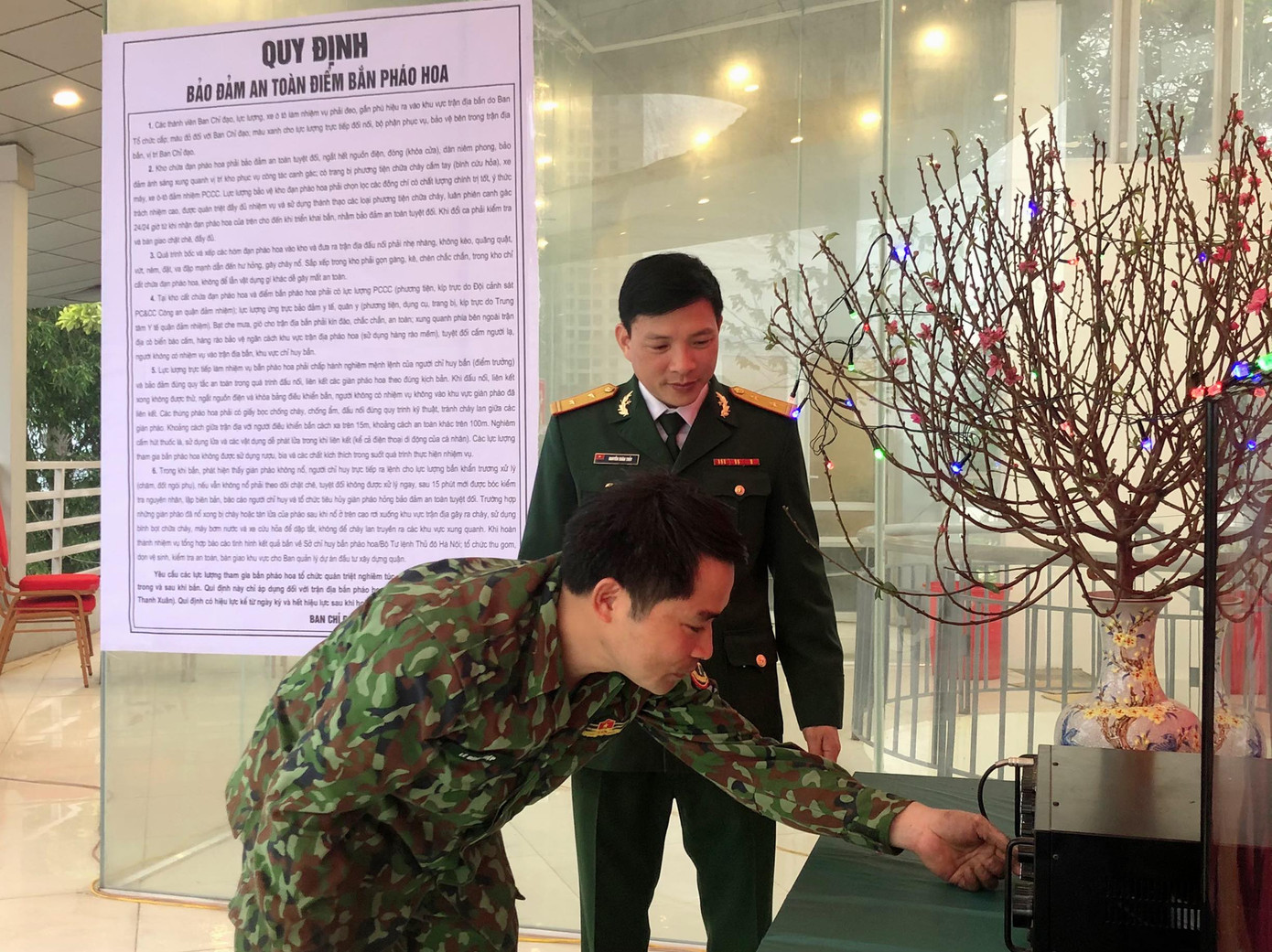 Cùng với đó, phân công lực lượng tham gia đầy đủ lớp tập huấn do trên tổ chức; phối hợp hiệp đồng, chặt chẽ với các lực lượng, chuẩn bị chu đáo mọi mặt từ con người, cơ sở vật chất, trận địa, tổ chức bắn pháo hoa theo đúng kế hoạch của Bộ Tư lệnh. Ban CHQS quận chỉ đạo 3 phường gồm Thanh Xuân Trung, Nhân Chính, Thanh Xuân Bắc phân công lực lượng (gồm 30 đồng chí cán bộ, chiến sĩ dân quân) phối hợp với Công an bố trí các chốt làm công tác bảo vệ an ninh trật tự vòng ngoài xung quanh trận địa và tại các ngã ba hướng vào Công viên; giữ khoảng cánh an toàn cho nhân dân khi vào trong công viên thưởng thức pháo hoa. Đồng thời, Ban CHQS cũng phối hợp với các đầu mối quan tâm chuẩn bị đầy đủ thông tin liên lạc, vệ sinh môi trường, điện chiếu sáng cần thiết.