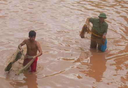 Các ao cá của đơn vị bị nước sông tràn vào, thiệt hại hàng trăm triệu đồng. Trong khi đó, phần lớn lực lượng cơ động của quân đội đã đi cứu trợ dân từ sáng sớm.