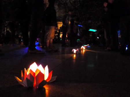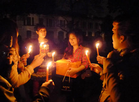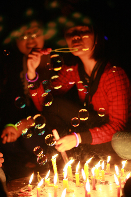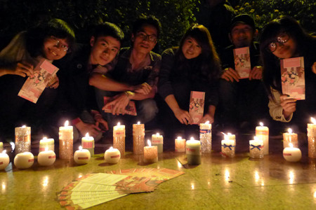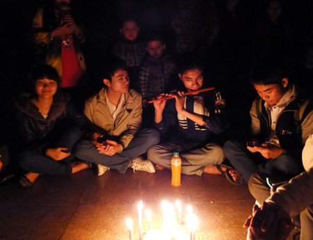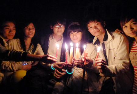 Hàng nghìn người cùng đếm ngược “5-4-3-2-1, tắt đèn”. Những ngọn nến lung linh dần được thắp lên. Các bạn trẻ, với khuôn mặt rạng ngời, cùng hát vang bài ca Trái Đất.
