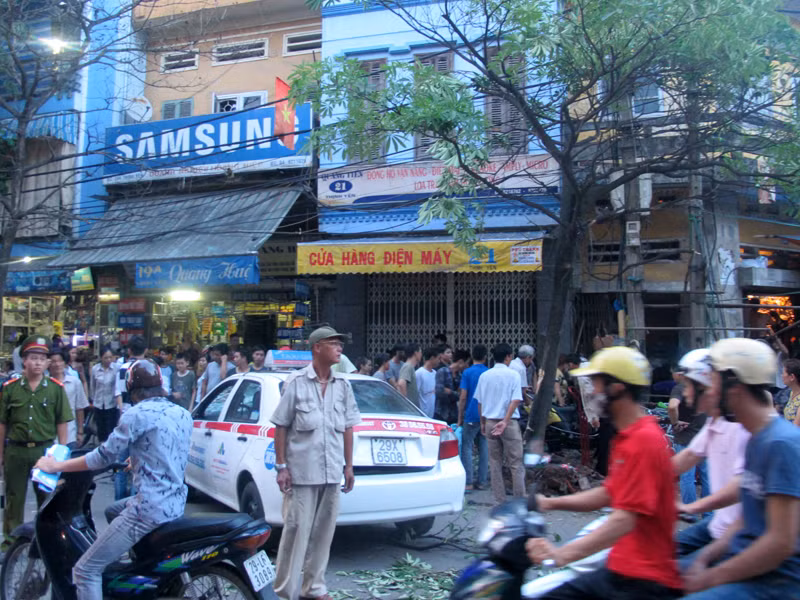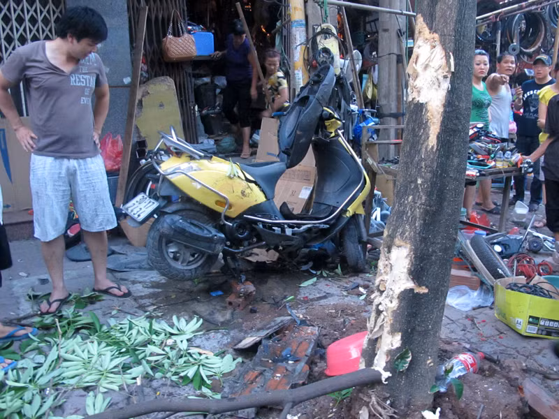 Vụ tai nạn liên hoàn xảy ra khoảng 17h20 hôm nay (10-5), tại khu vực chợ Trời (phố Thịnh Yên, quận Hai Bà Trưng, Hà Nội).