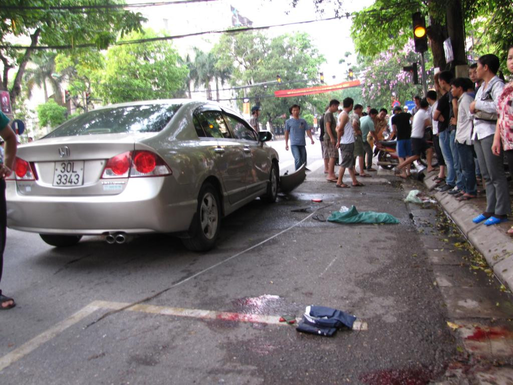 Chiếc ô tô Civic bốn chỗ BKS 30L – 3343 đang lưu thông trên phố Phan Chu Trinh (đường một chiều), khi tới đoạn trước số nhà 22 thì tài xế không kiểm soát được tay lái đã đâm phải một cặp vợ chồng đi xe máy Lead BKS 30M2 – 2582. Hai vợ chồng bị hất văng ra đường, trong khi đó chiếc xe máy vẫn bị mắc kẹt dưới xe ô tô, bị kéo lê một đoạn thì văng ra.