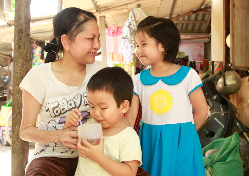 ... và quây quần cùng các con và bố mẹ đẻ khi chồng chạy xe ôm vắng nhà